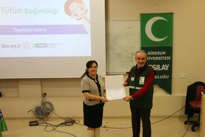 Giresun Üniversitesi Güre Yerleşkesi’nde, 1–7 Mart Yeşilay Haftası etkinlikleri kapsamında düzenlenen “Bağımlılıklarla Mücadele” başlıklı panel yoğun katılımla gerçekleştirildi. Genç Yeşilay Topluluğu tarafından organize edilen program, Mühendislik Fakültesi Ali Kuşçu Amfisi’nde yapıldı. Panelin moderatörlüğünü Öğr. Gör. Recep YAĞCI üstlenirken, panelde Giresun Üniversitesi Sağlık Bilimleri Fakültesi Ebelik Bölümü öğretim üyesi Doç. Dr. Çağla YİĞİTBAŞ, Dr. Öğr. Üyesi Bernu ULUSOY ve akran eğitmeni Melek ÇAYAN konuşmacı olarak yer aldı. Panelde söz alan Doç. Dr. Çağla Yiğitbaş panelde yeni nesil tütün ürünlerini etkilerini ve korunmayı anlattı.