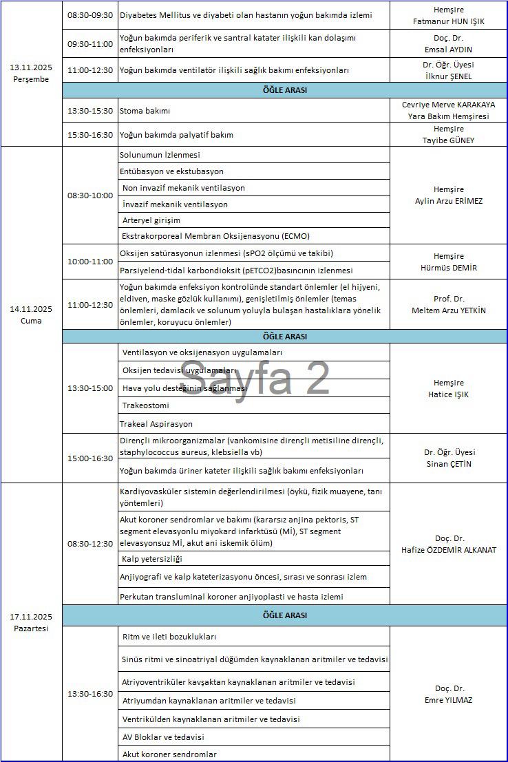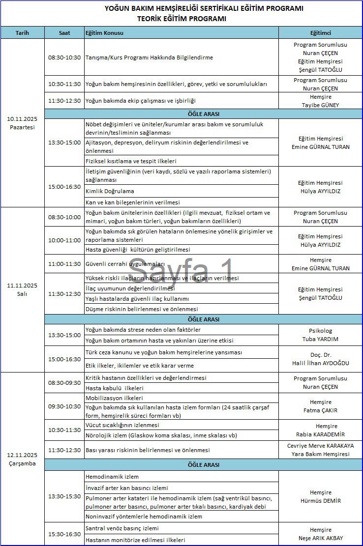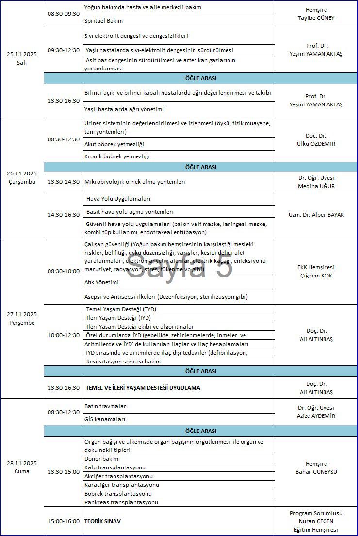 Fakültemiz Hemşirelik ve Ebelik Bölümü öğretim üyeleri Prof. Dr. Yeşim YAMAN AKTAŞ, Doç. Dr. Fadime ÜSTÜNER TOP, Doç. Dr. Hafize ÖZDEMİR ALKANAT, Doç. Dr. Fatma GENÇ, Doç. Dr. Ülkü ÖZDEMİR, Dr. Öğr. Üyesi Azize AYDEMİR Giresun Eğitim ve Araştırma Hastanesi tarafından düzenlenen Yoğun Bakım Hemşireliği Sertifikalı Eğitim Programında eğitimci olarak yer almışlardır.