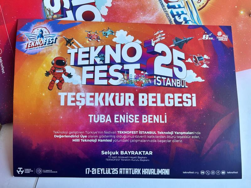 Ebelik Bölümü Öğretim Üyesi Dr. Öğr. Üyesi Tuba Enise BENLİ, TEKNOFEST'e Jüri Olarak Davet Edildi.