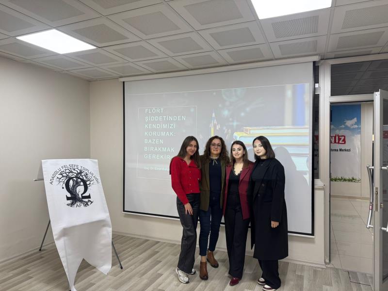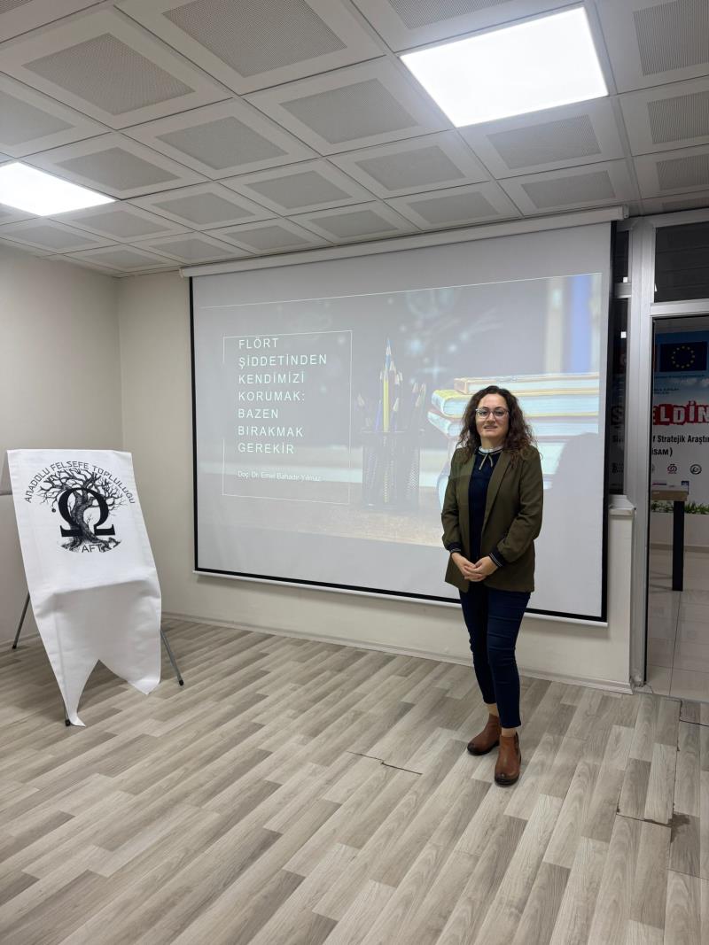 Fakültemiz öğretim üyelerinden Doç. Dr. Emel Bahadır Yılmaz, Anadolu Felsefe Topluluğu'nun daveti üzerine 13 Aralık 2025 tarihinde Giresun Belediyesi Gençlik Açık Ofisi'nde "Flört Şiddeti" isimli bir sunum yapmıştır. Öğretim üyemize teşekkür eder, başarılar dileriz