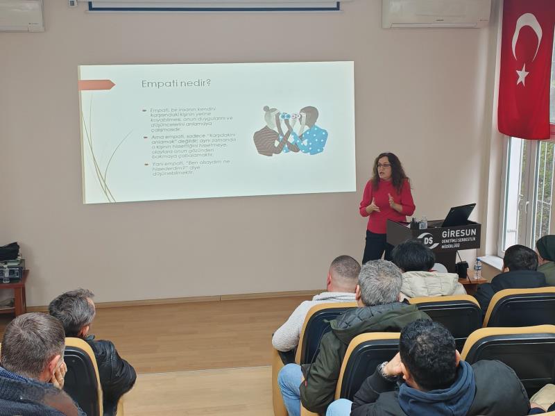 Fakültemiz Hemşirelik Bölümü öğretim üyesi Doç. Dr. Emel Bahadır Yılmaz, 12 Ocak 2026 tarihinde saat 13.45'te Giresun İli Denetimli Serbestlik Müdürlüğü'nün daveti üzerine "empati ve şefkat" isimli bir sunum gerçekleştirmiştir. Öğretimiz üyemize toplumsal katkı için teşekkür eder, başarılar dileriz.